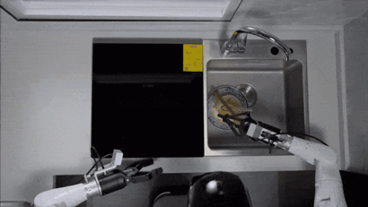 AgiBot World数据集中涵盖的场景具备多样化和多元化特点,从抓取、放置、推、拉等基础操作,到搅拌、折叠、熨烫等复杂动作,几乎涵盖了人类日常生活所需的绝大多数场景比如,其中一个视频展示的是机器人在电脑主机中内存条的过程,这需要机器人毫米级精细控制,稍有不慎就可能导致设备损坏,其如神经纤维般灵敏的末端触觉传感器,助力机器人实现了精准的对接;还有试图教会机器人如何用洗碗机的视频——在这条数据中,展现了厨房水池里勺筷碗盘层层堆叠,机器人将杂乱的餐具一一准确无误地整理至洗碗机相应卡槽中,操作流程长且动作十分繁琐。AgiBot World数据集中收录了80多种日常生活中的多样化技能视频,让机器人能够“十八般武艺样样精通”。